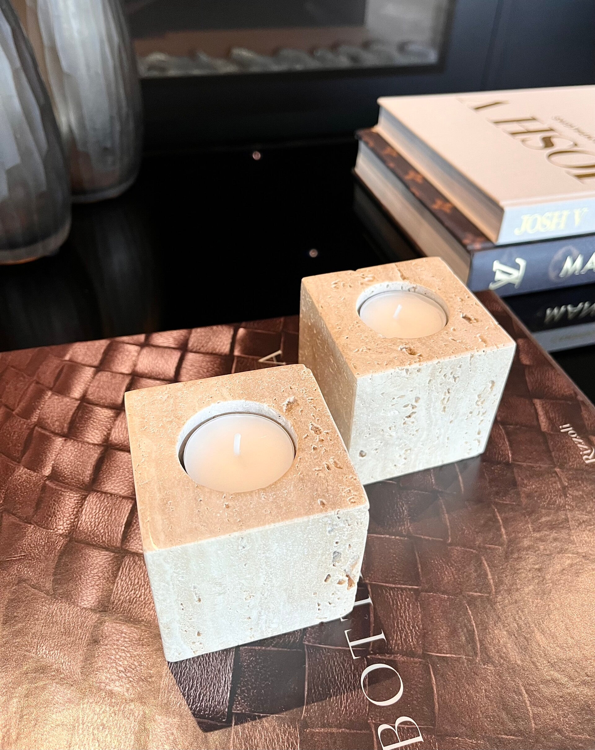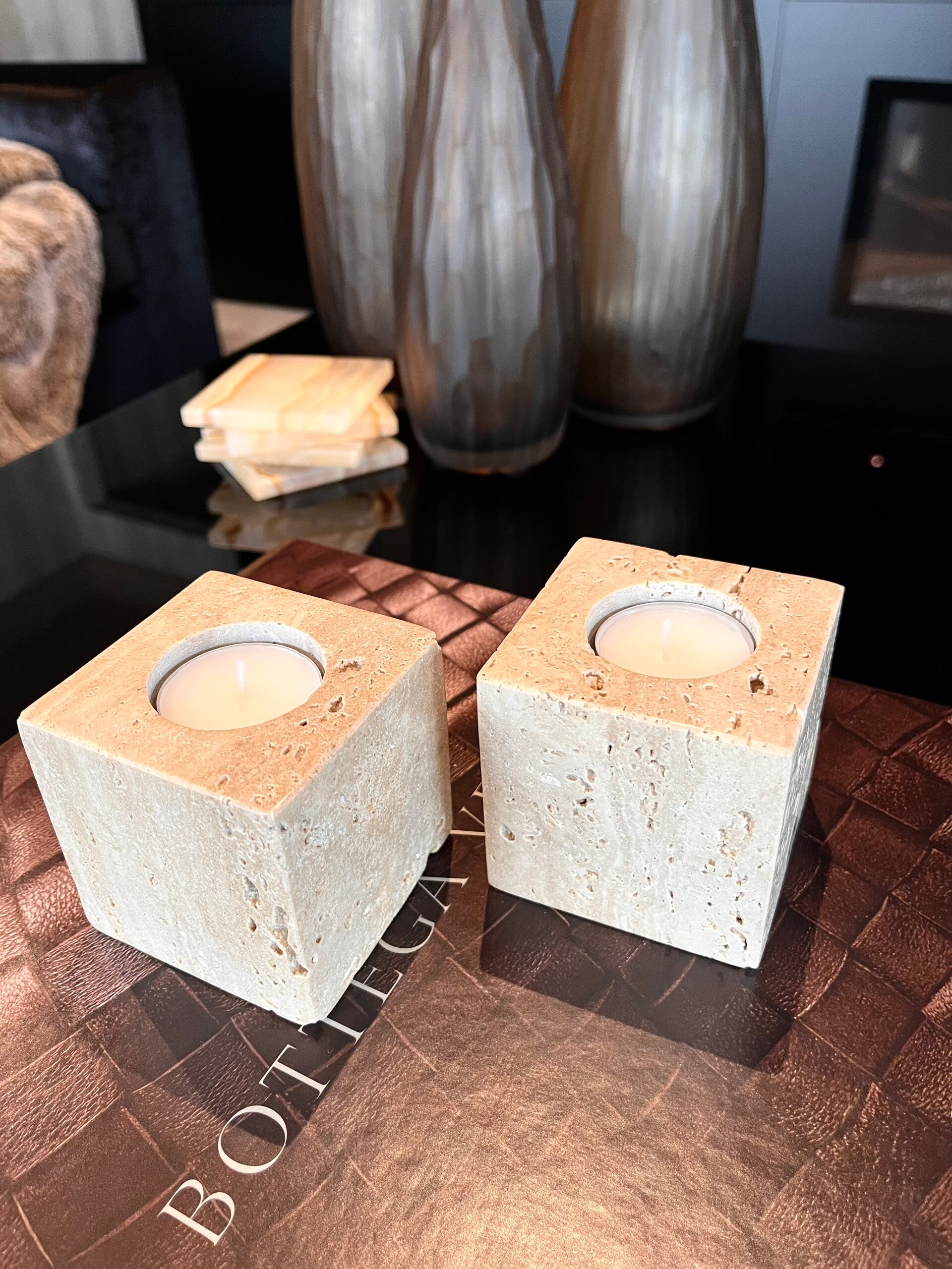 Travertine candle holder
